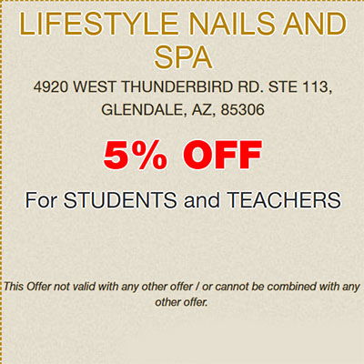 LIFESTYLE NAILS AND SPA 4920 WEST THUNDERBIRD RD. STE 113, GLENDALE, AZ 85306 |